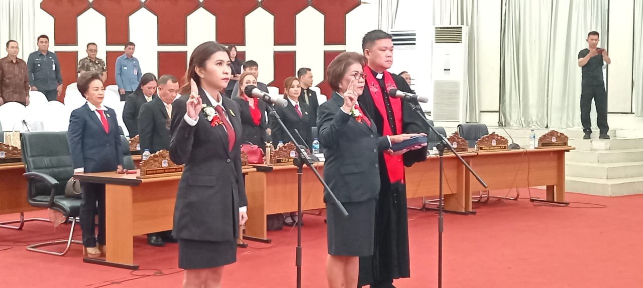 Andrei Angouw dalam sambutannya menyampaikan selamat kepada pimpinan DPRD yang barusan diambil sumpah/janji.