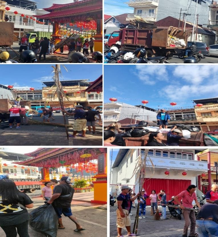 Jumat (14/2/2025), Dinas Lingkungan Hidup (DLH) Kota Manado bekerjasama dengan pengurus tempat ibadah Klenteng Ban Hin Kiong melaksanakan aksi bersih – bersih.