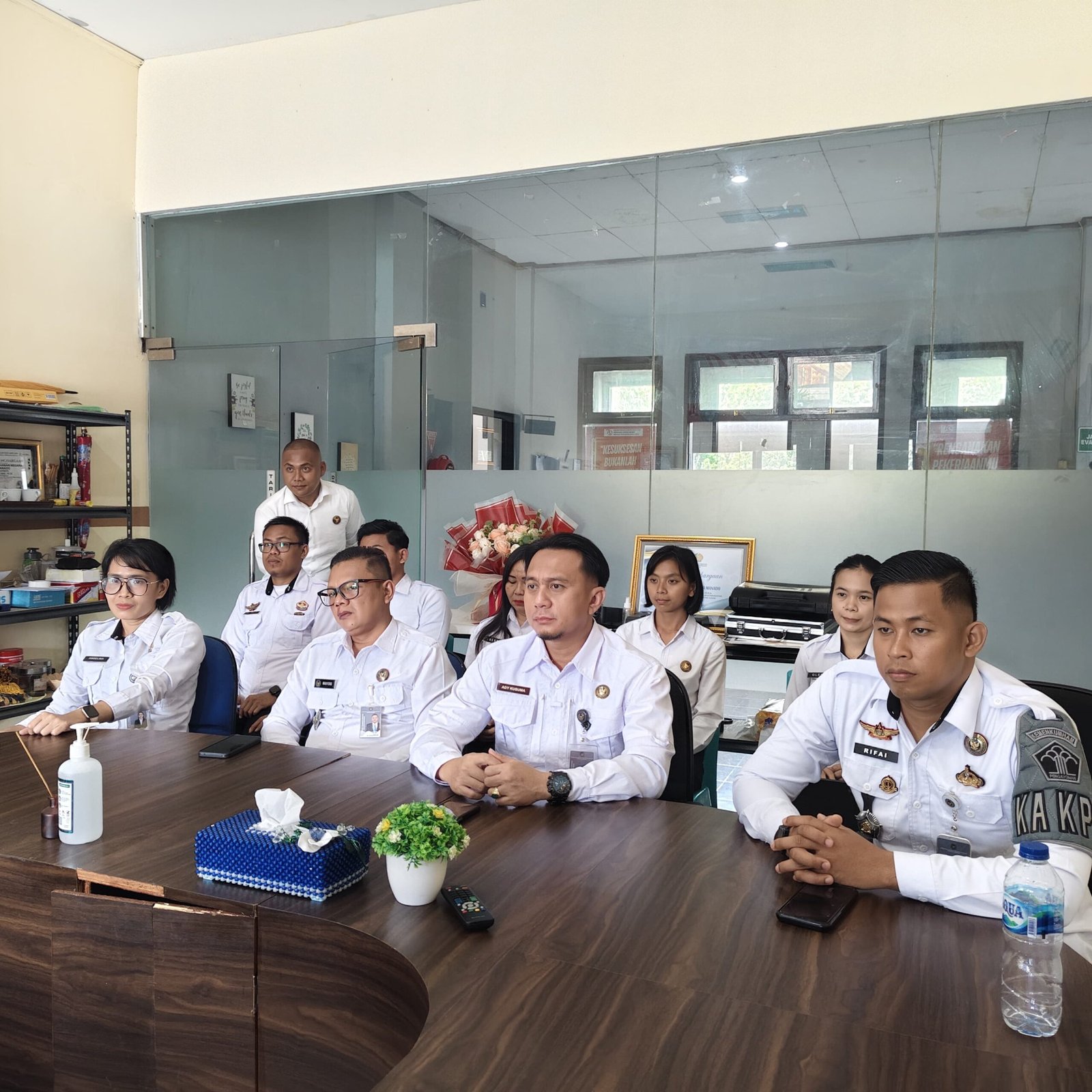 Kepala Rutan Kelas IIA Manado, Ady Kusuma W., bersama jajaran pejabat struktural dan seluruh staf, mengikuti pengarahan tersebut dari Ruang Pengelolaan Rutan. Suasana khidmat dan penuh perhatian mewarnai jalannya kegiatan yang sarat muatan motivasi serta penegasan arah kerja kelembagaan.