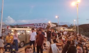 Usai melihat langsung kapal Phinisi, Walikota Andrei Angouw berjalan santai menyusuri area Manado Bay. Ia menyempatkan diri menyapa dan berbincang dengan warga yang sedang bersantai di tepi pantai, menciptakan suasana akrab dan penuh kehangatan.