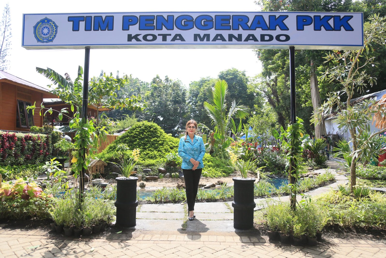 Ketua TP PKK Kota Manado, Irene Golda Angouw Pinontoan, hadir langsung dalam lomba ini untuk mendampingi tim yang menghadirkan karya taman penuh identitas lokal.