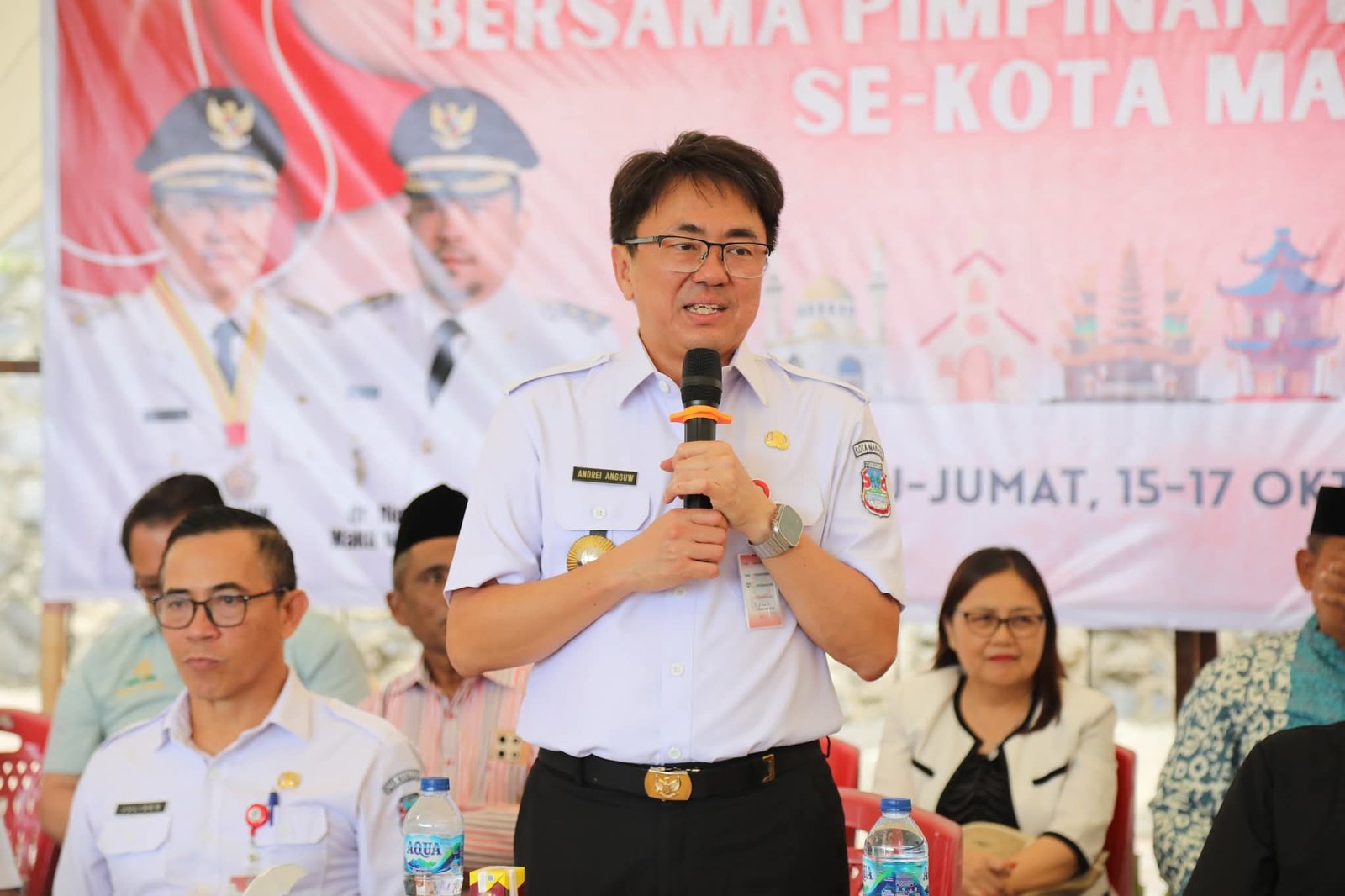 pionnews.com – Wali Kota Manado Andrei Angouw menghadiri kegiatan Tatap Muka Triwulan III bersama tokoh masyarakat dan pimpinan rumah ibadah se-Kota Manado.Kegiatan yang diprakarsai oleh Bagian Kesejahteraan Rakyat (Kesra) Setda Kota Manado bekerja sama dengan Presidium Badan Kerja Sama Antar Umat Beragama (BKSAUA) Kota Manado ini digelar di Pasar Wisata Tematik Bunaken, Kelurahan Tongkaina.